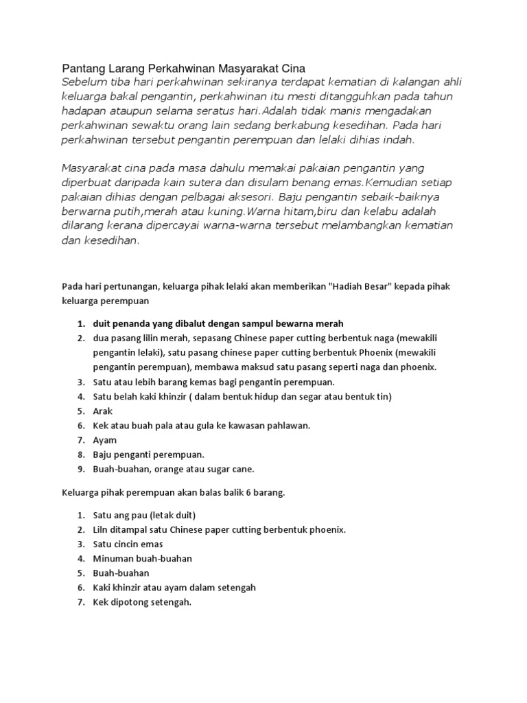 Pantang Larang Perkahwinan Masyarakat Cina Pdf